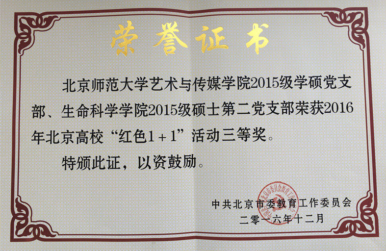新学期伊始,在2017年北京高校宣传工作会议上,生命科学学院频频收到捷报:细胞所博士生孔菲同学所在的学三楼618宿舍在2016年北京高校优秀学生基层组织创建评选活动中,获得“北京高校示范学生基层组织(示范)”荣誉称号;2015级硕士第二党支部与艺术与传媒学院2015级学硕党支部共同组织开展的“深入农村教育——半截塔村支教行动”荣获2016年北京高校“红色1+1”活动三等奖;2014级硕士第一党支部开展的“科学生活•健康你我”活动荣获2016年北京高校“红色1+1”活动优秀奖。这是我院研究生党支部第一次在北京高校“红色1+1”评比中获得荣誉。