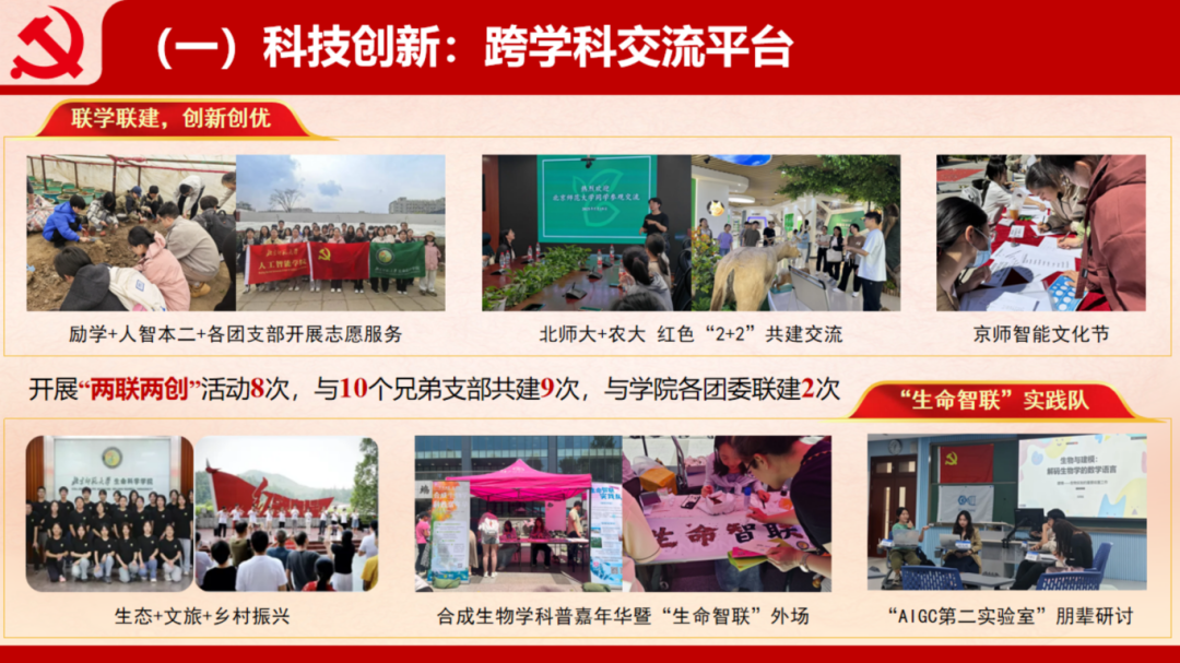 同时,支部通过跨学科交流与合作,与人工智能学院本科第二党支部实施“两联两创”项目——“AI 助力生命探索,青春点亮科教兴国”,与北师大 iGEM 团队组建“生命智联”实践队,将学科优势转化为服务乡村振兴的实际行动。