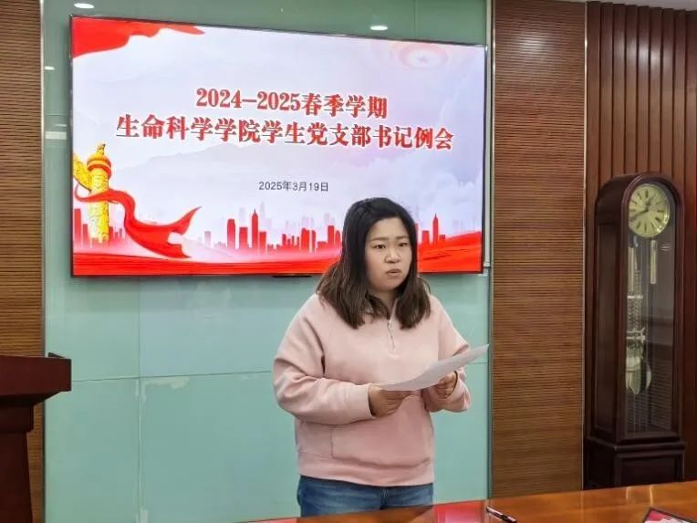 至此,本次党支书例会圆满结束!学生党支部作为党密切联系广大学生的桥梁和纽带,是引领大学生成长成才的重要阵地,也是党的教育方针政策在高校中最基层的贯彻者和实施者。生命科学学院将不断强化学生党支部规范化建设,确保支部作用发挥到位,为建设中国式现代化贡献青年学生的一份力量!