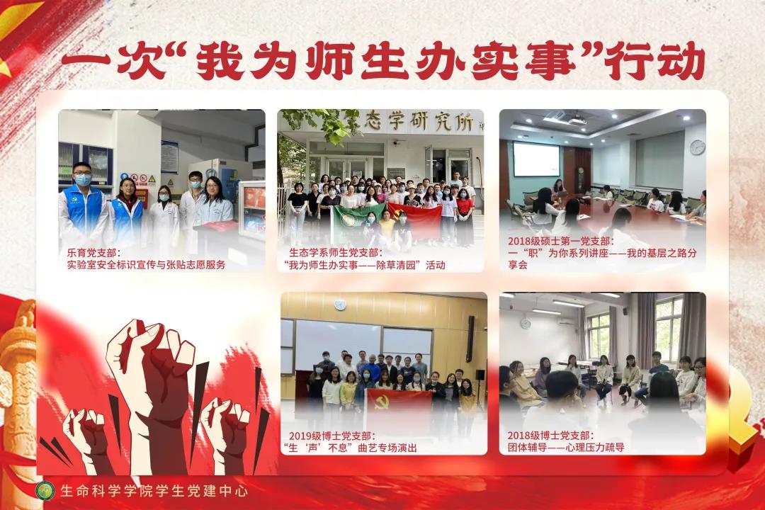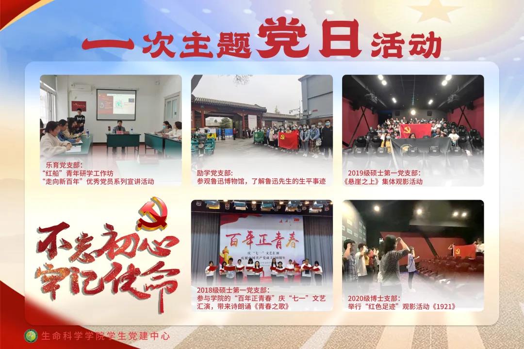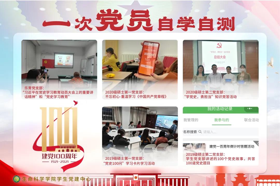 为庆祝中国共产党成立 100 周年,根据习近平总书记在党史学习教育动员大会上的重要讲话精神、中共中央印发 《关于在全党开展党史学习教育的通知》、中央和学校党委 的相关要求,生命科学学院党委在各学生党支部中积极开展了党史学习教育“七个一”主题活动,成果如下: