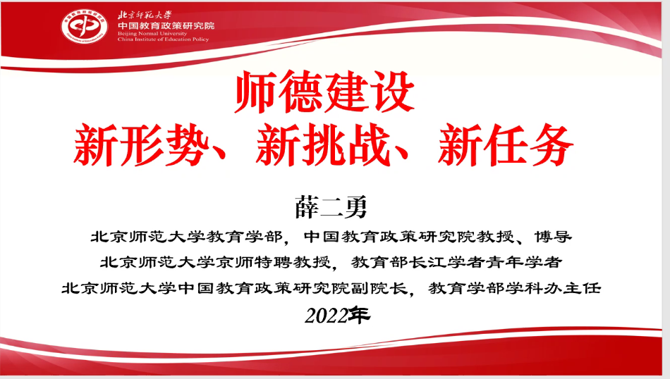薛二勇教授从政策解读、背景分析、案例分享等不同角度,阐释了社会环境、学情、教情变化背景下,高校师德建设面临的新形势、新挑战和新任务。他从专业角度系统梳理了师德建设的政策文件和重要意义,并结合自身教学经历和科研结果,通过详实的调研数据和相关案例,帮助大家把握做高校教师的基本原则和基本任务,进而明确了建立良好导学关系的新要求、新思路。讲座中,薛教授也对高校课程思政建设提出了良好建议,与会成员深受启发、受益匪浅。