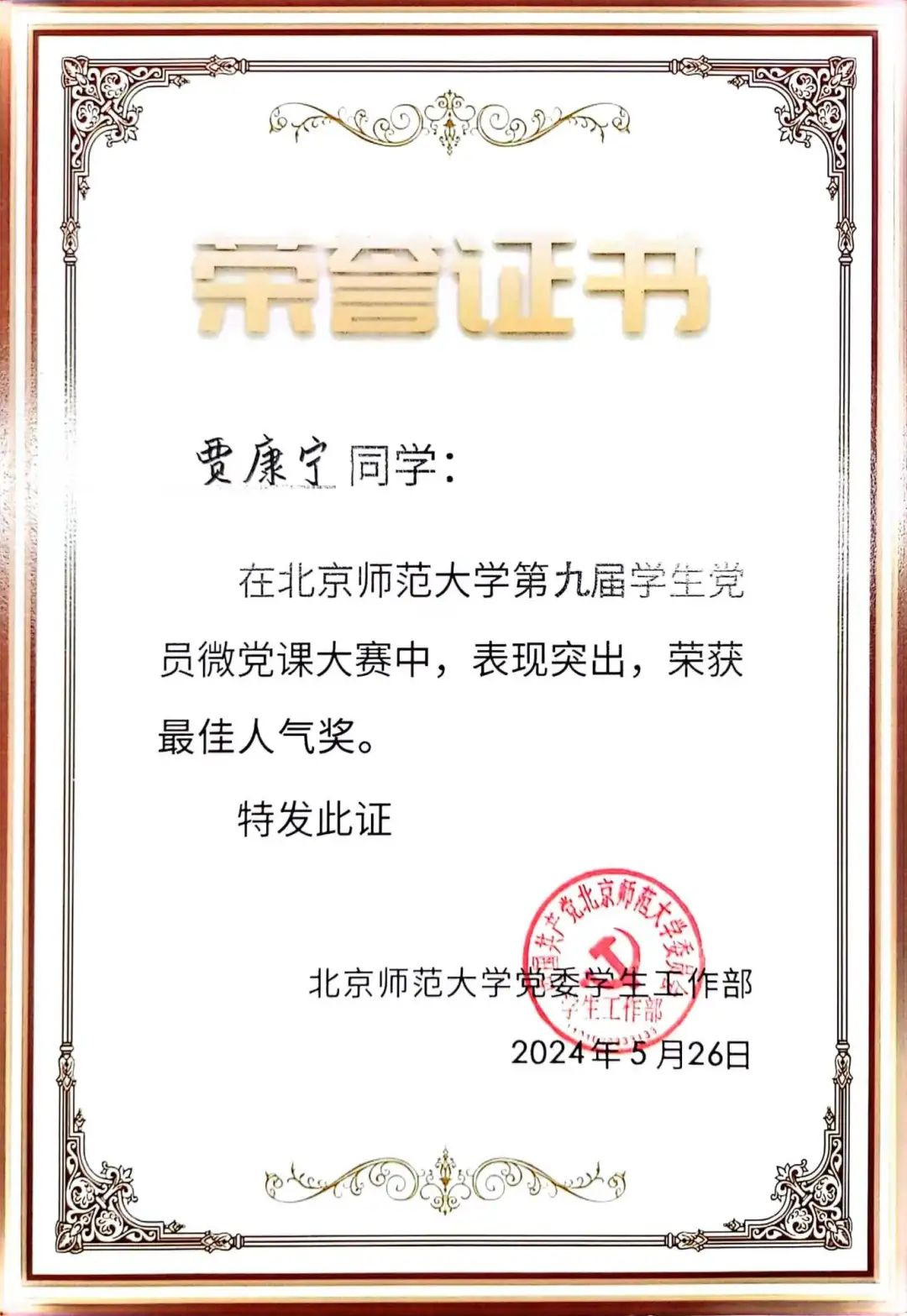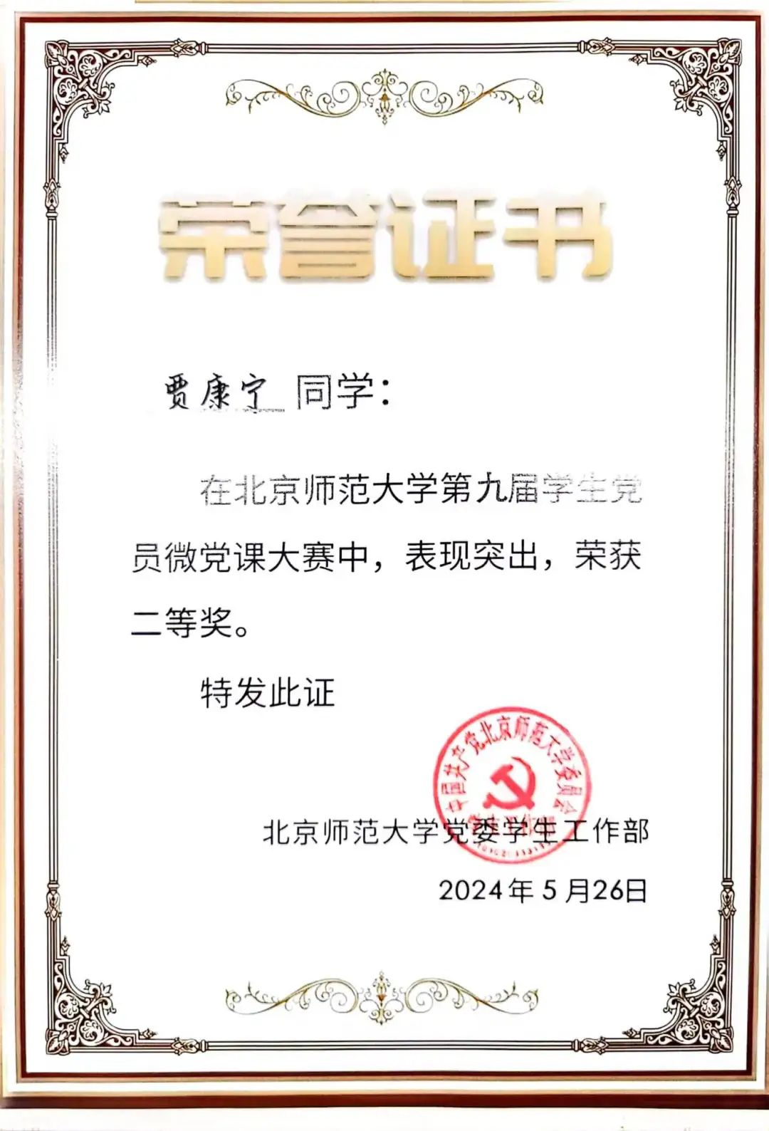 我院笃行党支部贾康宁同志经过初赛和复赛,成功进入北京师范大学决赛,并获得二等奖与最佳人气奖。