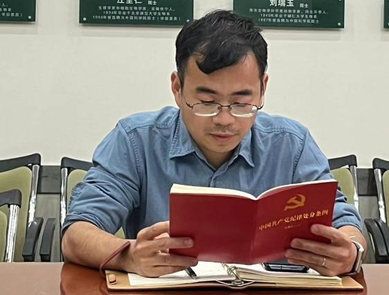 王天明同志领读了《条例》第一章《总体要求和使用范围》,指出《条例》制定目的是维护党章和其他党内法规,严肃党的纪律,纯洁党的组织,保障党员民主权利等,这为全党指明了纪律建设的方向和目标。党的纪律建设必须坚持以习近平新时代中国特色社会主义思想为指导,坚持和加强党的全面领导。接下来殷实、席超、董路、孙林分别领读第二章《违纪与纪律处分》、第三章《纪律处分通用规则》、第四章《对违法犯罪党员的纪律处分》和第五章《其他规定》,原原本本、逐章逐条学习《条例》。