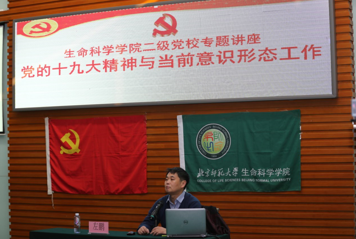 2017年12月27日下午,生命科学学院二级党校专题讲座在生科院多功能厅成功举办。本次讲座由生命科学学院分党委主办,生科院二级党校和学生党建小组承办,学院党委书记张朱博以及来自生命科学学院、后勤管理处、水科学研究院的师生党员代表近70人参加了讲座。讲座由生命科学学院党委副书记陈金波主持。