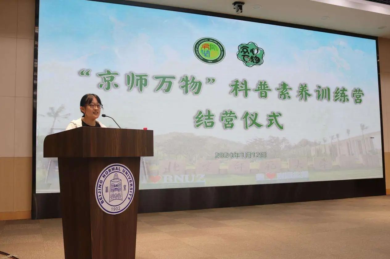 为深入学习贯彻党的二十大精神,全面落实习近平总书记关于科技创新和科学普及工作的重要指示精神,全面贯彻落实北京师范大学第十四次党代会精神,推动“一体两翼”向“两翼一体”发展,2024年1月9日至12日,生命科学学院于珠海校区举办“京师万物”科普素养训练营,40名来自京珠两校区的训练营成员参加了本次活动。