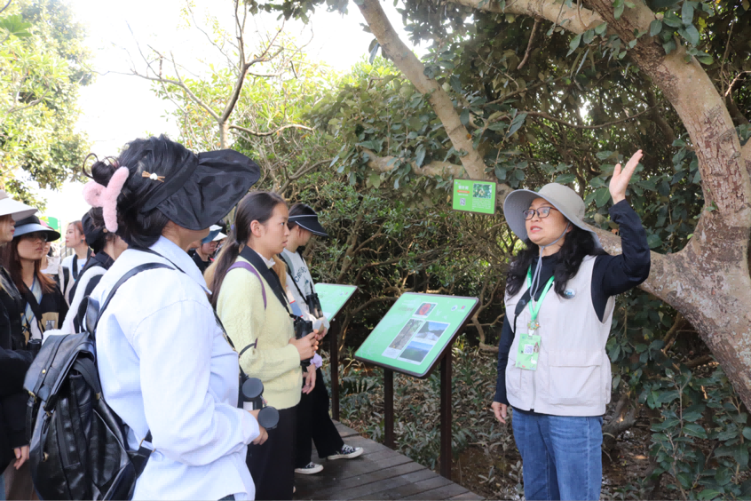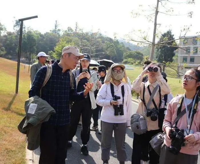 首先由王宁老师和刘健老师带领大家在红树林保护区外进行观鸟活动,并沿路介绍当地常见的林鸟、水鸟及识别特征,学员们通过望远镜观察鸟类的曼妙身姿与栖息环境。