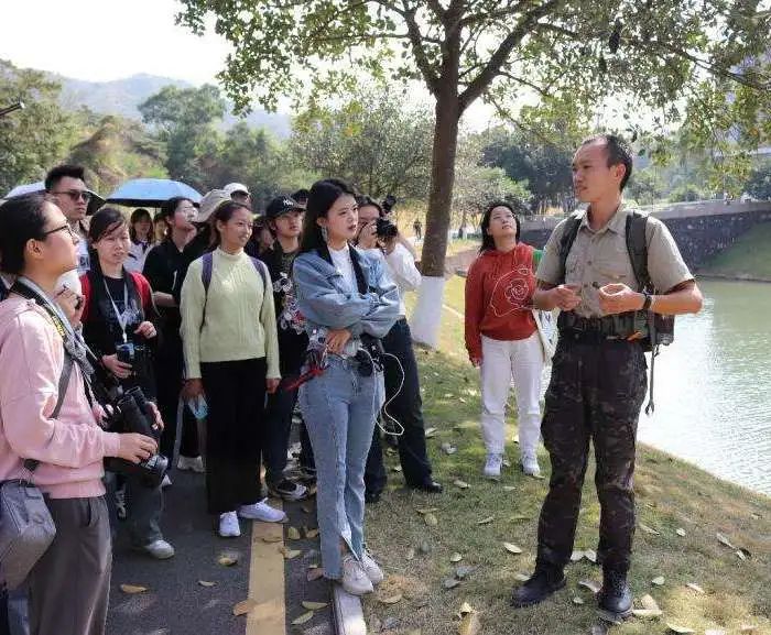 由红树林保护区的刘健老师和郝奇老师分别带队参观红树林,并讲解红树林的生存环境及红树的名称由来,带领大家认识红树林生态系统中丰富的动植物组成,尤其对底栖动物习性和植物分类进行了详细介绍。学员们通过深入了解红树林生态系统以及生物多样性,充分认识到保护自然、促进人与自然和谐共生的重大意义。
