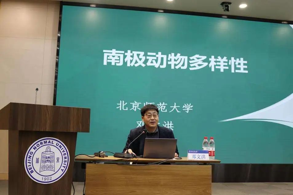 由北京师范大学生命科学学院邓文洪教授带来《南极动物多样性》主题讲座。邓老师具有丰富的南极科考经验,首先介绍了南极地区的地理概况以及我国设立南极科考站的历程,强调我国在维护海洋权益以及保护海域生物多样性方面的战略思维。并从自身多次科考经历出发,带领大家感受惊险的科考经历,讲述南极极具魅力的生物故事。