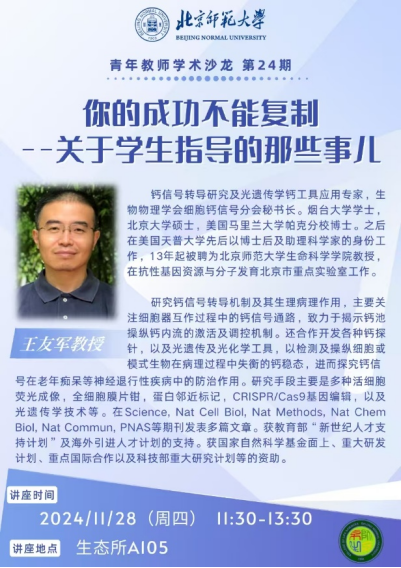 本次沙龙邀请到了生命科学学院教授、钙信号转导研究及光遗传学钙工具应用专家王友军教授作为主讲嘉宾。王老师的汇报主题是“你的成功不能复制——关于学生指导的那些事”,从如何理解导师角色、如何正确认识研究生、如何与学生实现共赢三个角度分享了自己的研究生指导心得,他认为,每个人的成长路径都是独一无二的,因此不能简单地复制他人的成功模式。作为教师,首先要做好自己,然后根据学生的特点和需求,量身定制指导方案,激发学生的潜能和创造力。王老师的汇报引起了老师们的共鸣,也为初建立实验室的青年教师提供宝贵经验。