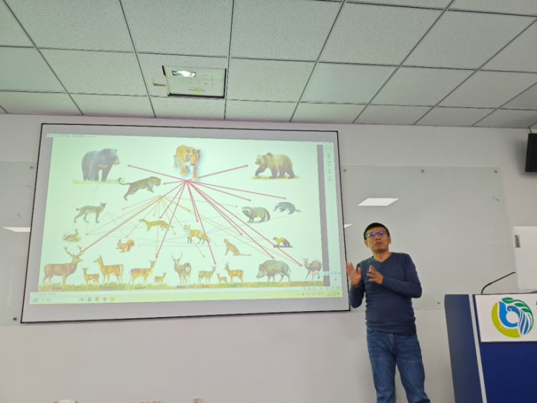 生命科学学院冯利民教授则以“食肉动物保护研究”为题,深入浅出地阐述了食肉动物种群、种內及种间关系、我国东北虎豹生态环境、生活习性以及面临的威胁,并提出了针对性的保护措施和建议,有效促进学科交叉和融合。