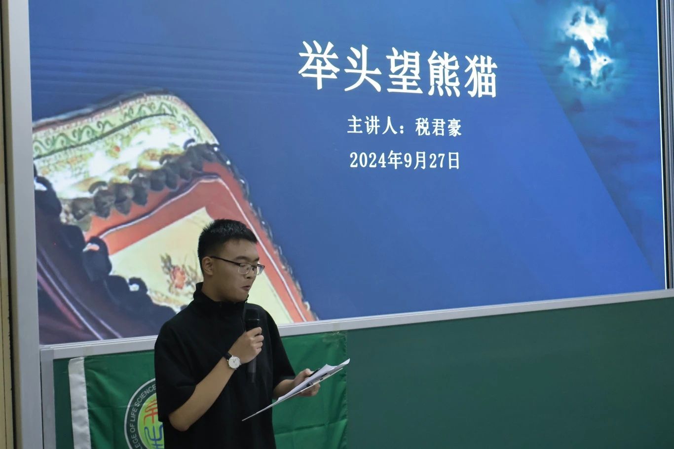 举头望熊猫,熊猫不在天上,而在树上。税同学用风趣幽默、别开生面的授课方式,向同学们介绍熊猫为什么要上树,为什么一棵树上通常没有多只熊猫等等科学问题,为同学们描绘了国宝熊猫性情温顺、行踪隐秘的可爱形象,同时引导大家正确认识熊猫,传达“源于野归于野”的野生动物保护理念。