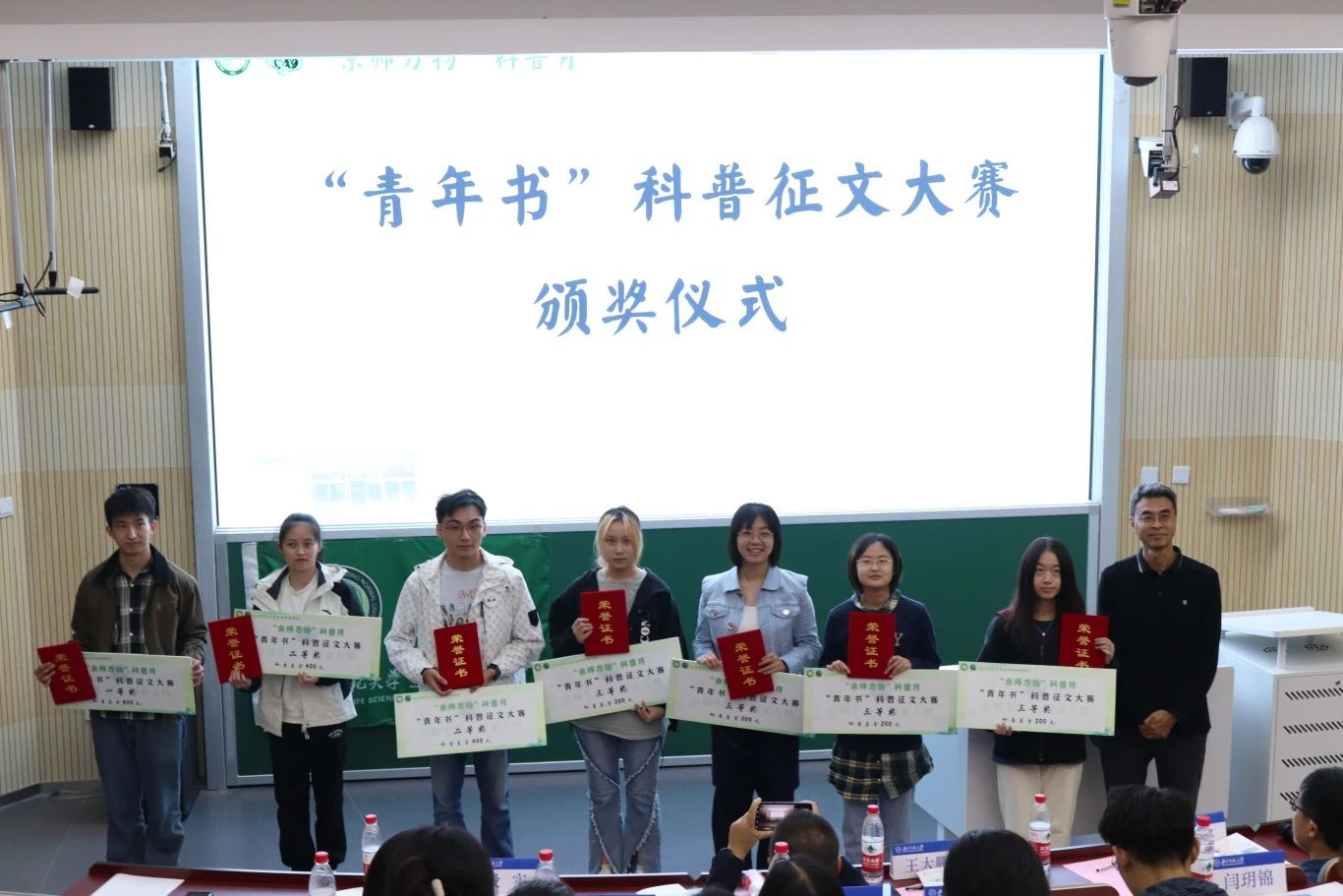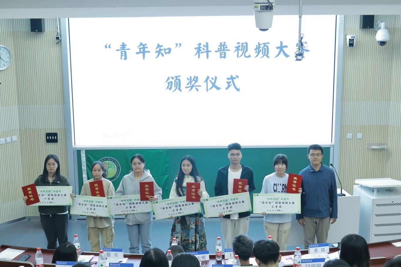 此次“青年知”科普视频大赛,许多制作精良的视频作品突出重围,创作者通过独特的拍摄手法,或结合自身经历,或结合独到思考,带来一个个具有启发性的科普视频。生命科学学院副院长董路老师为一、二、三等奖获得者颁发获奖证书和科普基金。