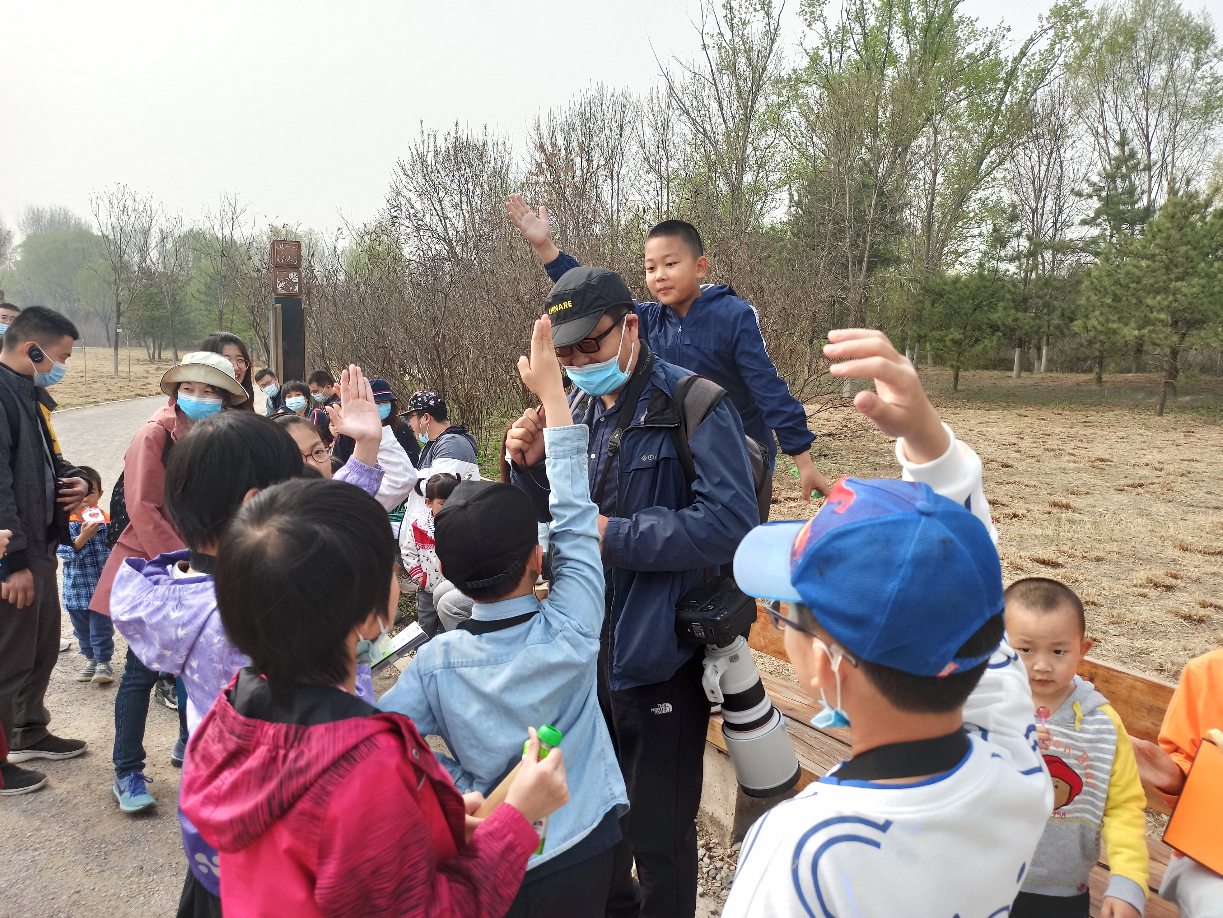 接着,在分发了望远镜和讲解耳机后,所有成员被分成A组和B组两个小组,分别在邓文洪教授和董路教授的带领下环绕翠湖进行实地观鸟体验。两位教授首先对北京市、海淀区的鸟类保护情况进行了整体介绍,随后,对沿湖看到的绿头鸭、鸿雁、苍鹭等鸟类进行了详细讲解。教职工老师和小朋友们积极参与观鸟并不时提出问题,现场学习氛围浓厚。