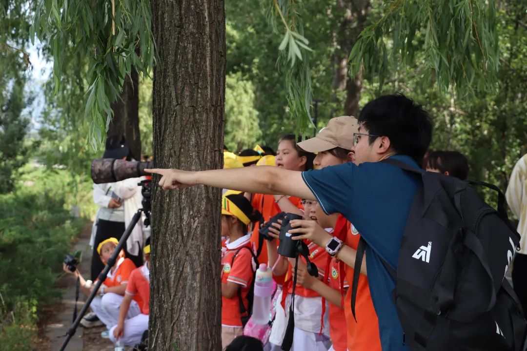 2025年6月5日和6日,在副院长董路教授与密境生态保护中心观鸟老师的带领下,北师大生科院志愿者分两次带领约240名密云一小的学生一起前往密云北庄朱家湾开展观鸟实践课程。一路上,志愿者们充分发挥专业知识,为同学们细心讲解沿途见到的各种鸟类,同学们兴致盎然地观察着周围鸟类的一举一动。在短短的一个多小时中,普通鸬鹚、北红尾鸲、长嘴剑鸻、发冠卷尾等鸟类悉数飞过。同学们在观鸟的亲身实践中,切实体会到密云地区生物资源的丰富。看着这些灵动的鸟儿,同学们深刻意识到,要为这些大自然的精灵们守护好这一方天地,让它们能够长久地在这里繁衍生息。