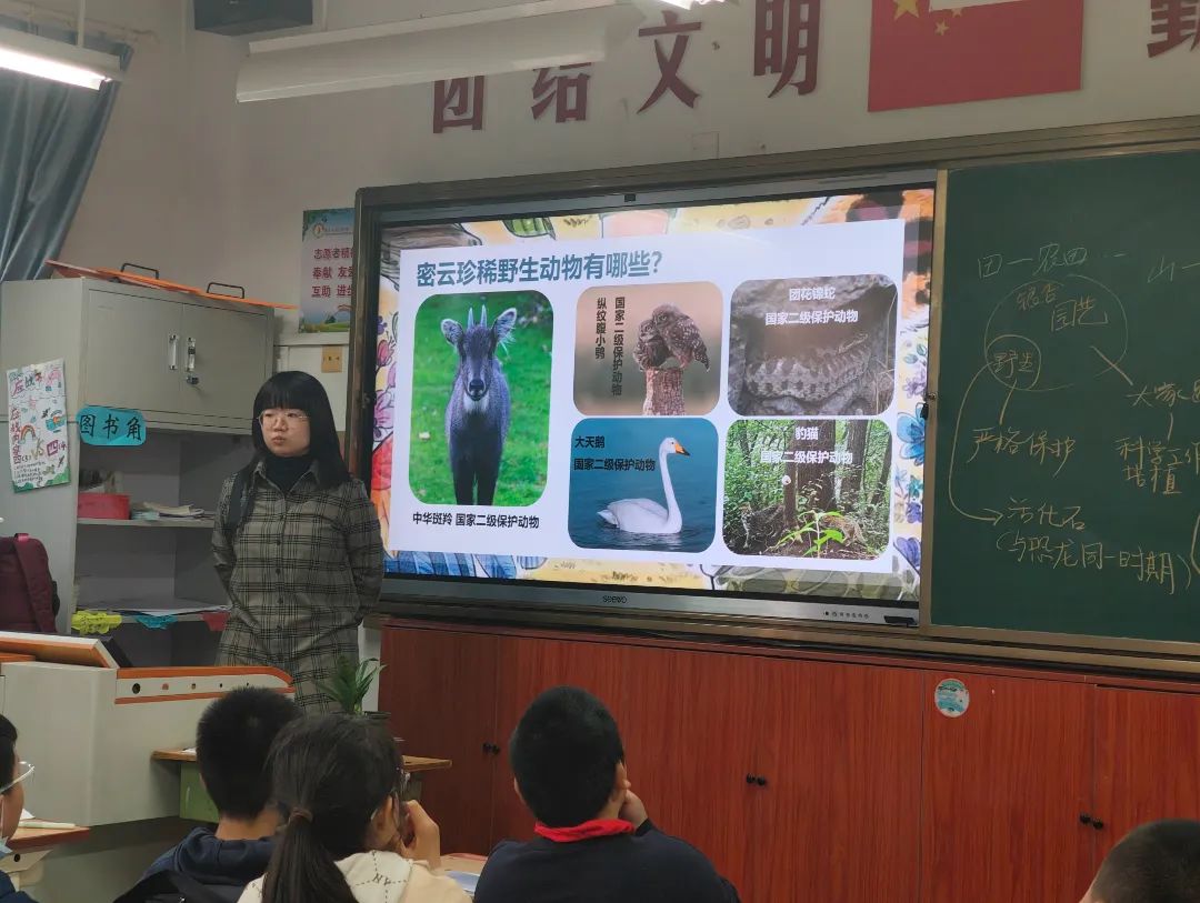 2025年4月3日,开展了第三讲《珍稀野生动植物保护——密云在路上》。承接之前的课程内容,志愿者们从珍稀野生动植物出发,引导同学们思考密云区的生物多样性,了解其生态优势。之后重点向同学们介绍了密云区在动植物栖息地保护、自然教育资源开发利用等方面做出的努力和贡献,让同学们意识并认可生态优先、绿色发展理念的重要性。