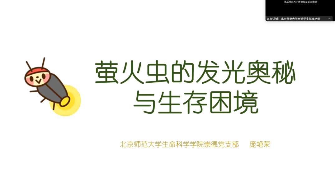 “京师万物”科普宣讲团与“中国梦·强师行”云支教继2025年寒假合作开展《东北虎——森林中的王者》与《鸟类繁殖季:一场生命交响乐》课程后,于2025年7月29日为中西部地区的50余名学生带来《萤火虫的发光奥秘与生存困境》线上授课。