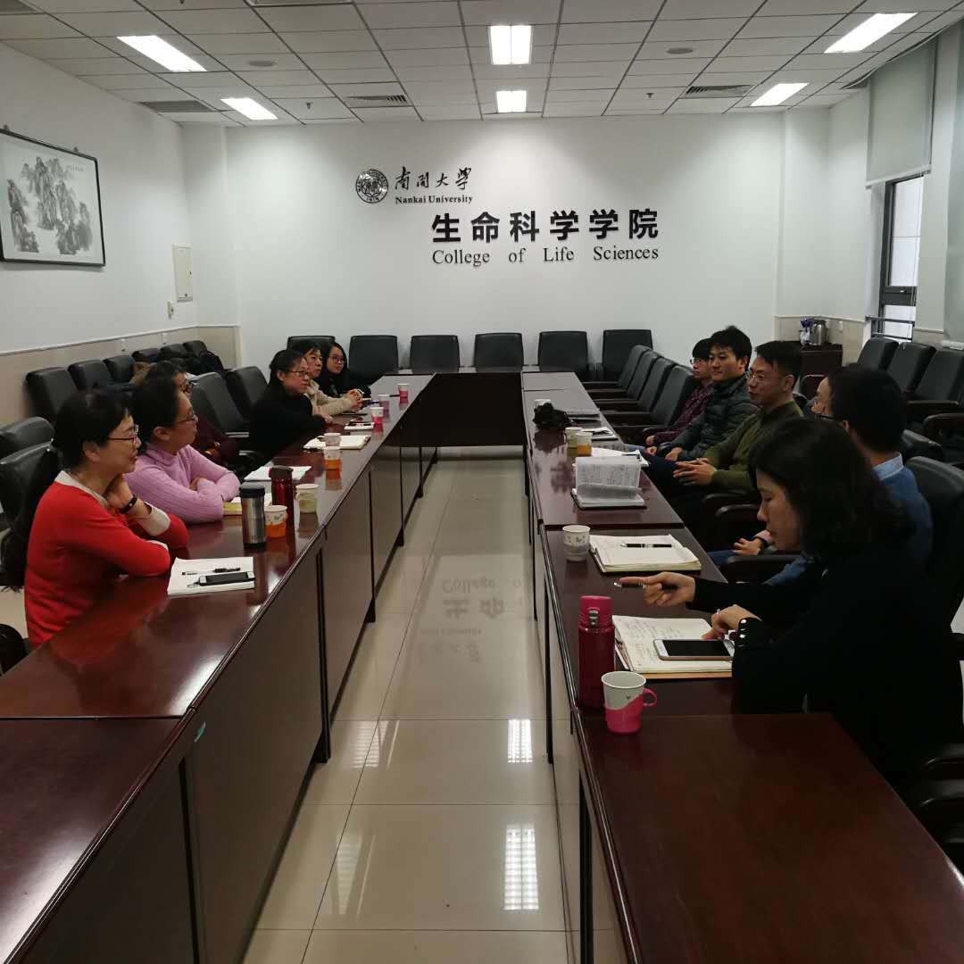 2018年12月14日上午,生命科学学院副院长张兰、学院工会主席孙一娜一行7人前往天津南开大学生命科学学院调研。南开大学生命科学学院副院长兼工会主席田在宁及相关行政人员参加座谈交流。