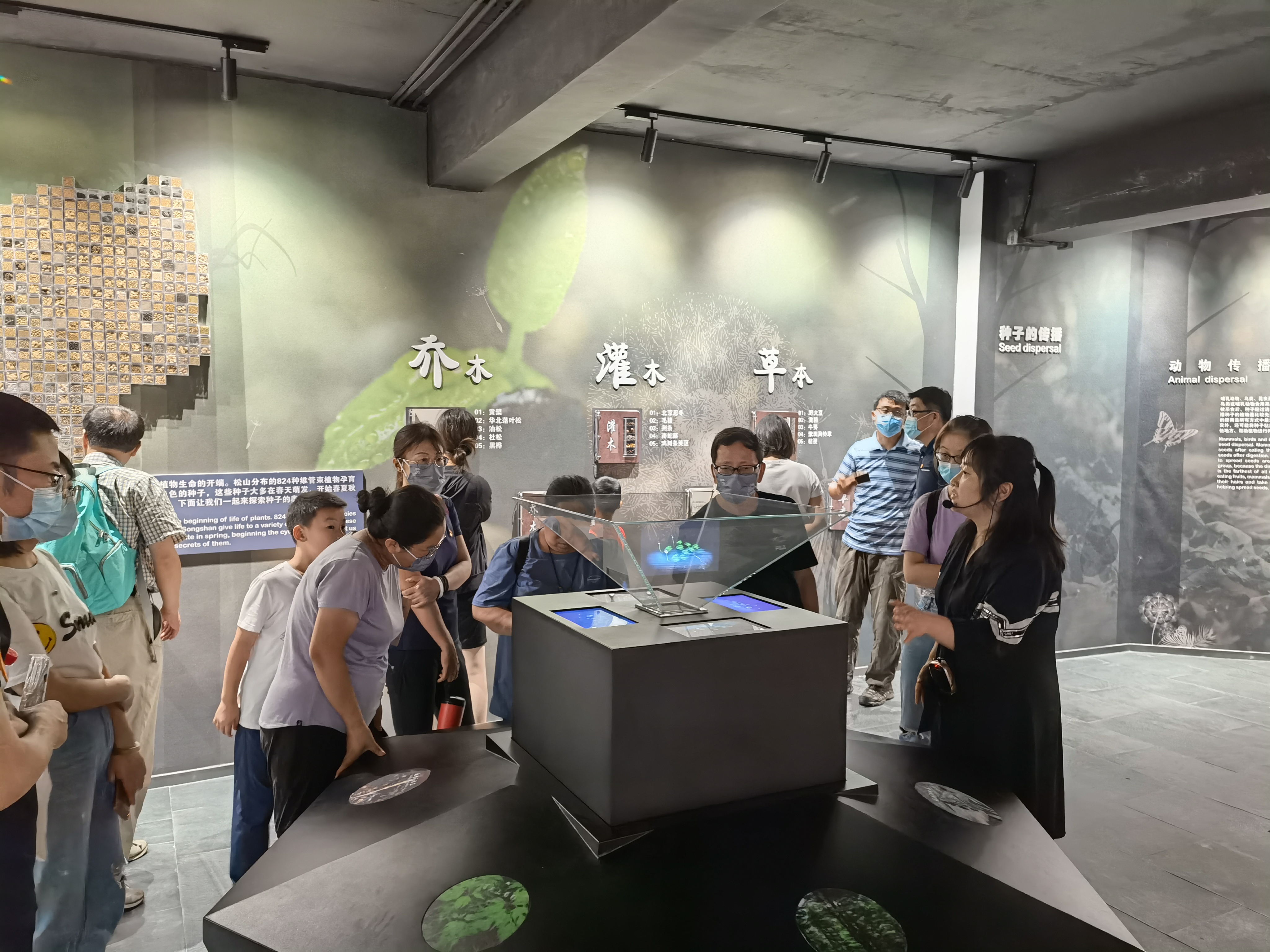 最后,一行人参观了松山生物多样性保护科教中心。该中心利用360°全息投影、3D投影、VR等技术手段,全方位展现了辖区内动植物的生动形态,使大家更全面、生动地了解了北京生物多样性保护成果。