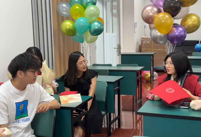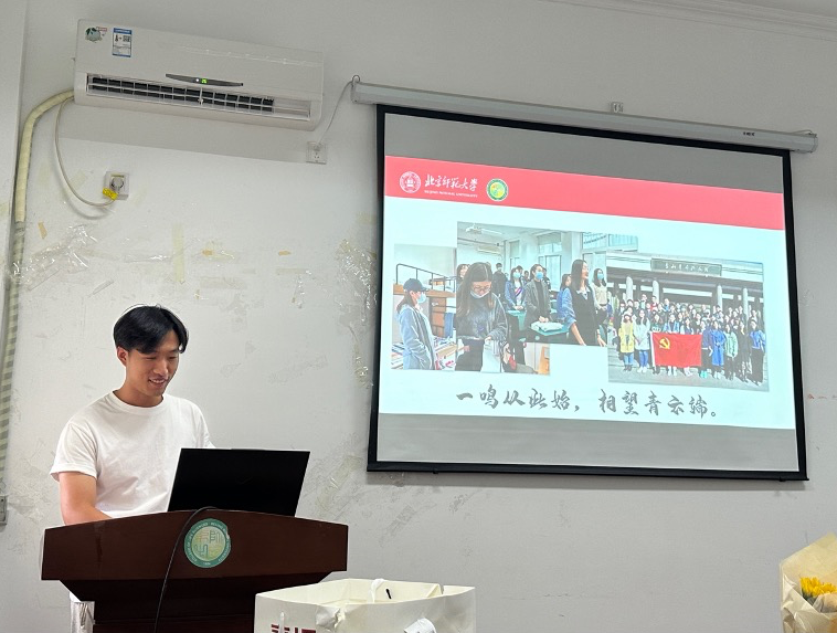 苏元博同志对2024届毕业生参与的支部活动进行总结回顾并赠予毕业生定制毕业贺卡。