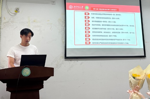 进行党纪学习主题教育。苏元博同志领学《条例》主要内容,强调了修订要点。希望毕业生党员能够切实把贯彻好《条例》作为一项重要任务贯穿到未来工作和生活中,懂法纪、明规矩、知敬畏、存戒惧,始终做到慎初、慎独、慎微,始终做到忠诚干净担当。