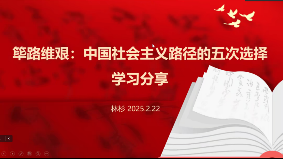 “寒来书往”读书会第二期于2025年2月进行,读书会围绕《筚路维艰:中国社会主义路径的五次选择》这本书进行党史研读,结合自主学习与集体交流,引导支部成员更深刻地认识到中国共产党在不同历史阶段的政策选择及其背后的逻辑,增强对党的历史使命和责任的理解。
