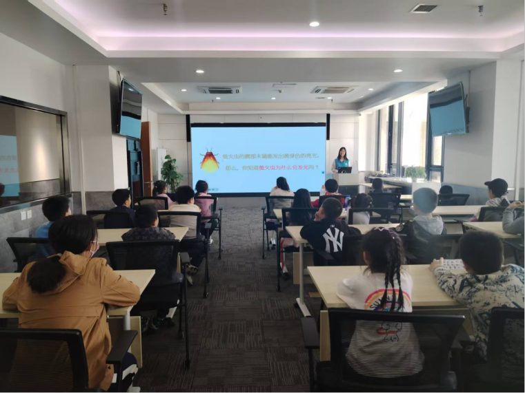 2025年4月4日,崇德党支部陈昱臻同志为北京科学中心的学生们讲解《萤火虫为什么会发光》科普课程。