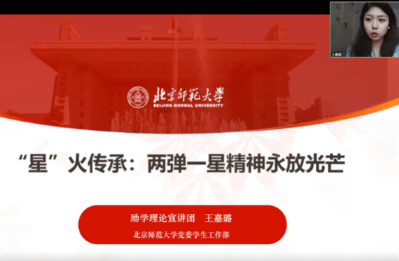 参观结束后,全体同学齐聚教室,聆听北京师范大学励学理论宣讲团王嘉璐同学带来的《星火传承:两弹一星精神永放光芒》主题宣讲。