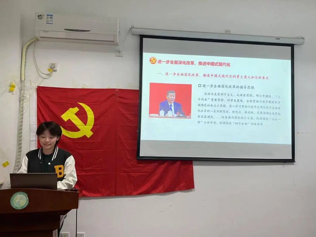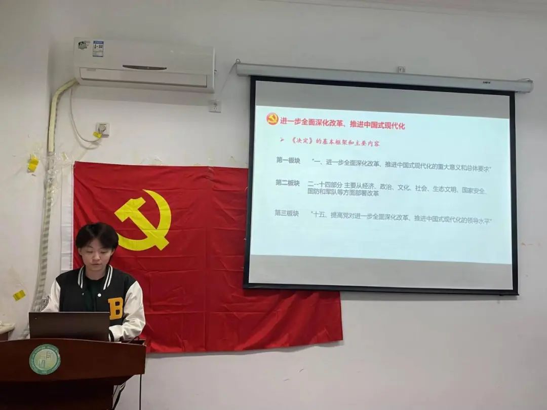 紧接着,开展9月联合党小组会。此次党小组会以学习《中共中央关于进一步全面深化改革、推进中国式现代化的决定》(以下简称为《决定》)为主题,由宣传组和活动组联合开展,并由活动组彭俊瑀同志主讲。