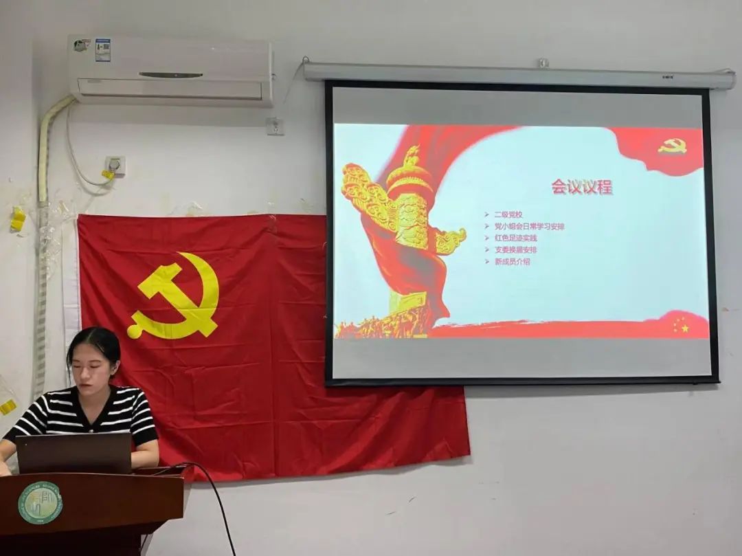 会议第三项,由张瑜同志向支部成员介绍新学期的工作安排。其中包括党小组会的形式变化、支委换届工作、督促大家进行二级党校的学习并积极参与红色足迹实践活动等。
