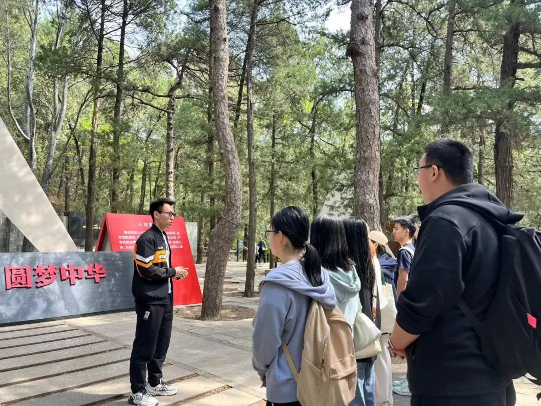 一二·九运动纪念亭位于北京海淀区寿安山西麓、卧佛寺西北樱桃沟内,为纪念“一二·九”学习抗日爱国运动而建立。2024年4月20日上午9时,笃行党支部与2023级生态学硕士团支部共同组织15名党员与团员共同来到北京西郊的国家植物园樱桃沟,寻访“一二·九”运动纪念亭,铭记抗战历史,缅怀革命先烈。