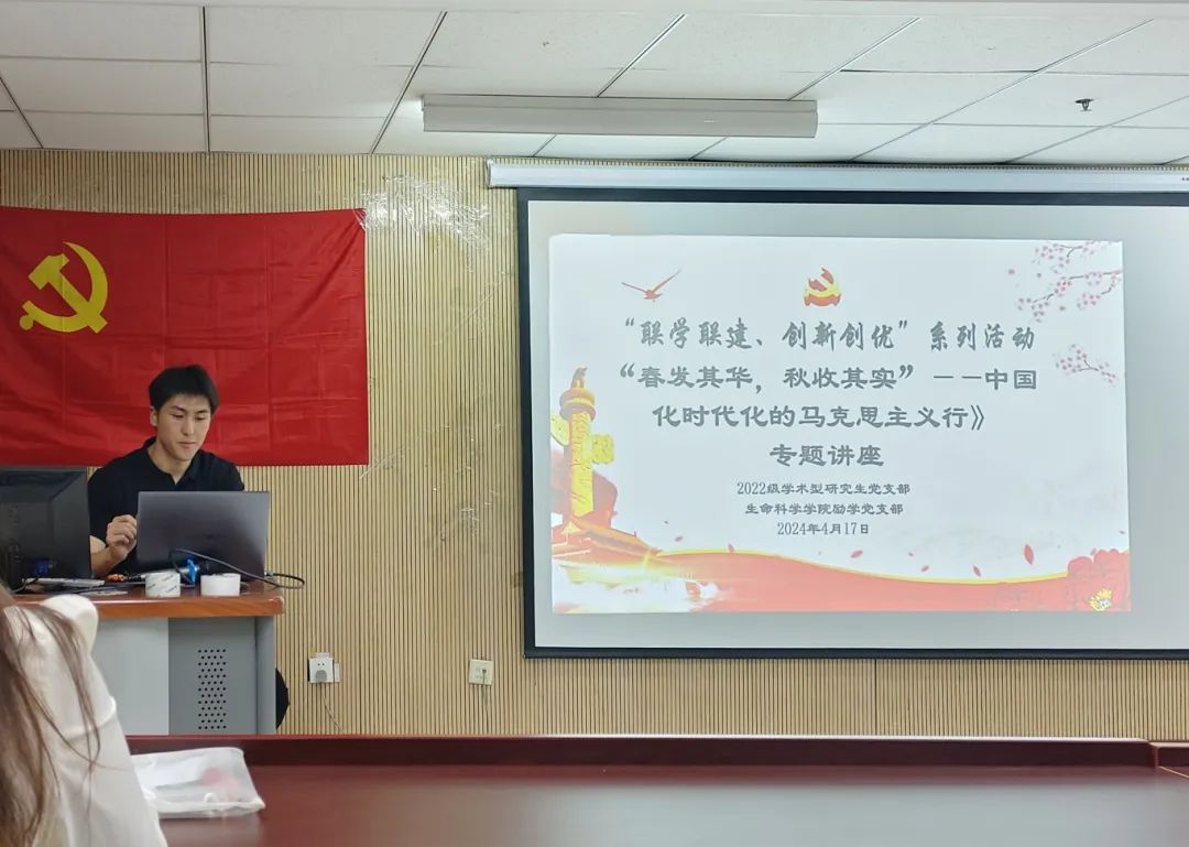 为学习领会习近平新时代中国特色社会主义思想的重要意义,进一步推进党纪学习教育,切实增强青年党员廉洁自律意识。2024年4月17日,体育与运动学院2022级学术型研究生党支部与生命科学学院励学党支部邀请北京师范大学求索学社宣讲团成员张金金开展专题党课。党支部书记李世田主持会议,2022级学术型研究生党支部及生命科学学院励学党支部共计45名党员参加本次专题学习