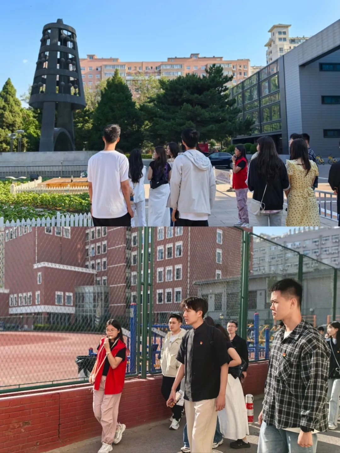 活动尾声,在北京师范大学白鸽青年志愿者协会刘予晗的带领讲解下,两校同学漫步北师大校园,共赏“木铎金声”“京师学堂”等校园十景。天朗气清,惠风和畅,在古朴与现代交融的校园风貌中,同学们不禁按下快门,留下值得纪念的这一刻。