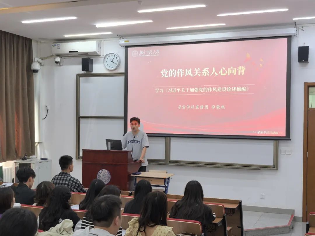 活动伊始,两校同学们齐聚生二教室,开展 “中央八项规定精神”专题学习座谈会及东北虎科普讲座。首先,笃行党支部书记李强同志对中国农大的同志们的到来表示热烈欢迎,并介绍了此次共建活动的行程和意义。随后,北京师范大学青春讲师团李骁然开展了《党的作风关系人心向背》的主题宣讲,结合《习近平关于加强党的作风建设论述摘编》,领学了中央八项规定的核心内容,结合高校党员实际,强调青年党员应筑牢思想防线、严守纪律底线。