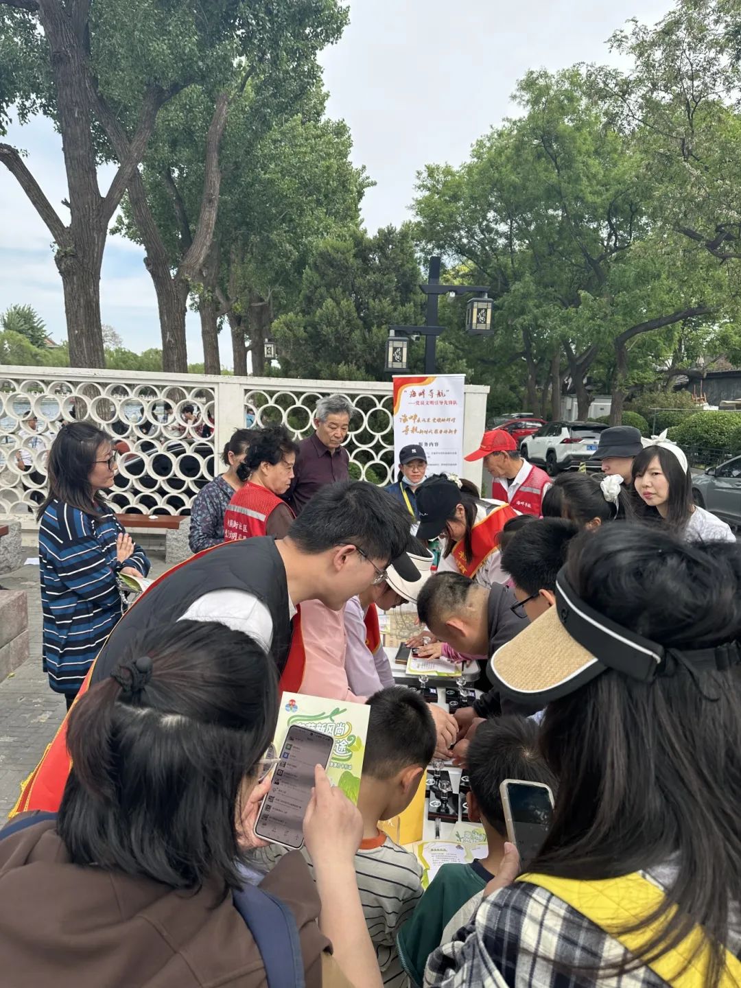 “海畔导航” 党员文明引导先锋队在后海边的 “铜老头” 雕像以及社区办公场所处分别设立服务点,为过往游客提供基础信息服务、指路服务、景点介绍和文化介绍等内容。其中,打卡集章活动十分受欢迎!不少游客自发地以 “文明旅游”“什刹海” 等为主题,在社交媒体上晒出集章照片与后海的风景美图,通过网络平台热情传递着后海的独特魅力与文化底蕴,带动起文明游览、文化传承的清新风尚。