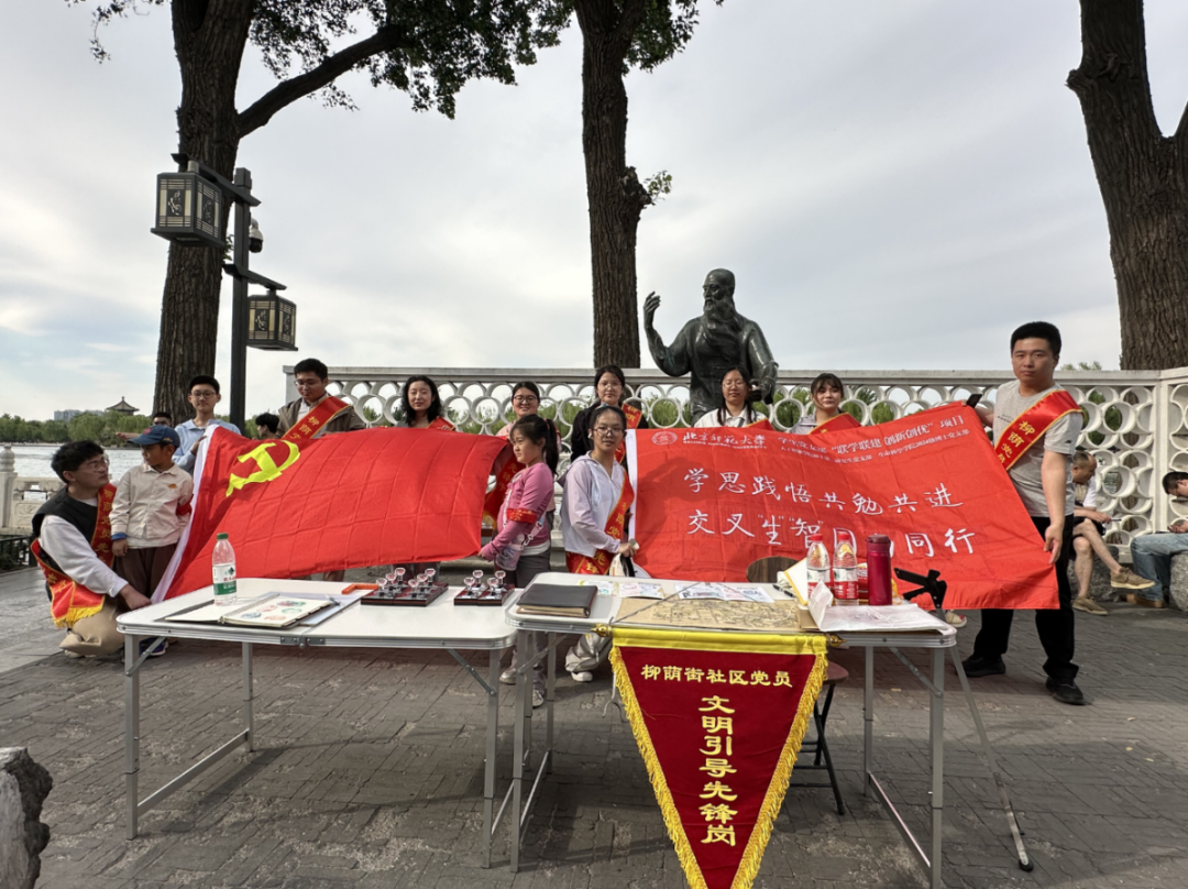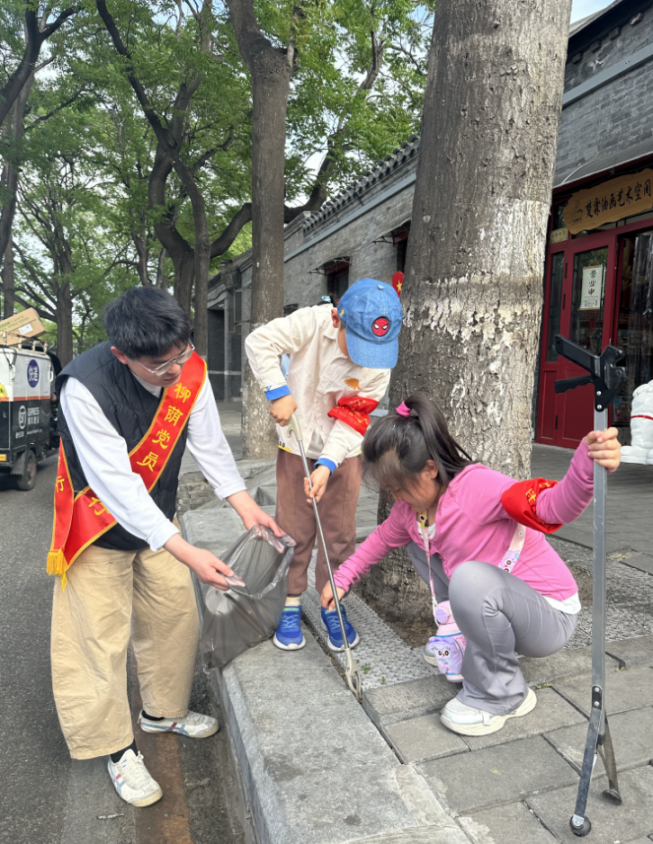 为深入贯彻落实党的二十大精神,深化新时代党建引领基层治理创新,在五一国际劳动节期间(5月1日至5日),生命科学学院2024级博士党支部联合人工智能学院硕士第三研究生党支部,以"校地共建聚合力 科技赋能惠民生"为主题,走进具有深厚红色文化底蕴的西城区什刹海街道柳荫街社区,共同开展"海畔导航"红色"1+1+1"先锋行动。活动内容涵盖打卡集章说明、信息介绍、社区清扫、引导出行多个方面,人工智能学院硕士第三党支部与我支部共计30余人参与本次活动。