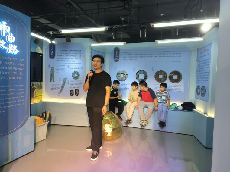 随后,由各支部的志愿者们结合专业所长,分工协作开展志愿讲解。崇德党支部与法学院2024级法律硕士第二党支部、化学学院硕士生一班党支部的志愿者主要负责引导服务工作,协助维持现场秩序、解答参观咨询,确保活动有序开展。金融学第二党支部的志愿者则聚焦展馆内“币由之路”、“币操胜券”等展区,用通俗的语言为参观群众尤其是青少年群体,讲解货币演变背后的经济逻辑、不同理财方式的特点与风险,帮助大家建立基础财智认知。