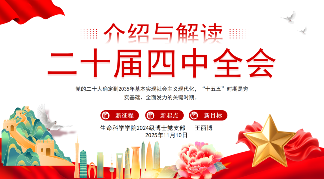 为学习好贯彻好党的二十届四中全会精神,2025年11月10日中午12:30,生命科学学院2024级博士党支部于生态楼A105召开党员大会,本次会议由党支部书记王丽博同志主持,支部党员及部分积极分子参与本次会议。