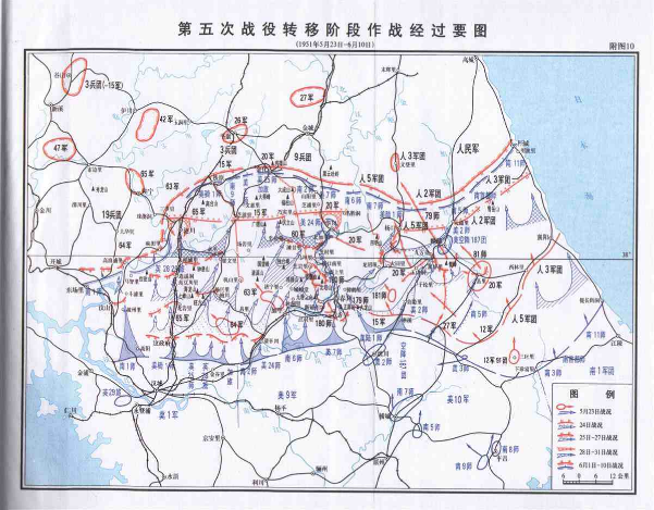 第二阶段在4月28日展开,鉴于西线推进受阻,彭德怀决定主力转兵东进,以歼灭东线南朝鲜军为目标。5月16日,东线中朝军队各突击部队转入进攻,迅速包围南朝鲜军。经过激烈战斗,取得重大战果。然而,李奇微调动美军快速增援,堵住缺口,双方再次形成对峙。在这一阶段,中朝军队充分展现出顽强的战斗意志和卓越的作战能力,虽未完全达成战略目标,但给敌军以沉重打击,为后续战争走向奠定了基础。