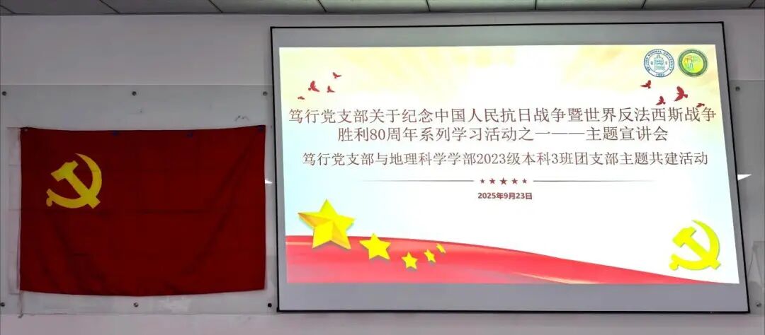 本次活动由笃行党支部书记李强主持,并邀请青春讲师团成员进行授课。同时,为落实“党团班一体化建设”号召,本次活动与地理科学学部2023级本科3班团支部共同开展。