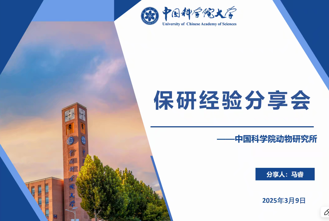 2025年3月9日晚,由励学党支部联合SKY学长计划举办的保研经验分享会第三场于线上顺利举行。为了帮助同学们更好地了解保研流程、明确未来规划,本次活动特别邀请了中国科学院微生物研究所、中国科学院动物研究所、中国科学院生物物理研究所以及北京生命科学研究所的四位优秀学姐学长,他们结合自身经历,深入剖析保研申请的关键环节,分享科研学习的心得体会。整场活动干货满满,为大家提供了宝贵的经验和实用的建议。