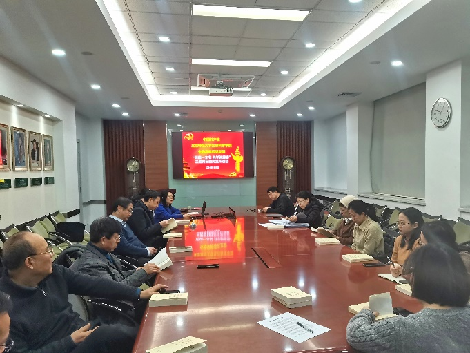生物学教师党支部将《专题摘编》纳入主题教育学习计划,于2024年1月9日在生地楼116会议室组织支部22名党员教师原原本本学、逐字逐句悟,深刻领悟两个确立”的决定性意义,增强“四个意识”、坚定“四个自信”、做到“两个维护”切实把习近平新时代中国特色社会主义思想运用到教育工作中,变成改造主观世界和客观世果的强大思想武器。