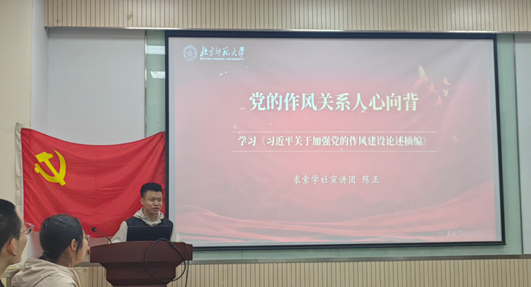 本次活动邀请到了求索学社的陈正同志作《党的作风关系人心向背——学习〈习近平关于加强党的作风建设论述摘编〉》主题宣讲。