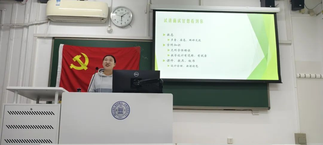 接下来,孟庆玉老师重点分享了试讲过程中面试官的期待,引导同学们思考如何更好地向面试官展示自己,其中包括试讲时所呈现的个人状态、学科知识以及所用到的课件、教具、板书等,并建议同学们在试讲前做足功课,了解教材,防止知识性错误,在试讲时声音要洪亮,注意重点,并且在切换知识点时不能太过生硬,可以融入一些比较吸引人的个人特色。在介绍完试讲相关部分后,孟庆玉老师还根据北京现阶段的中考政策,为同学们未来的教师职业生涯规划提出建议,提示同学们在面对教师职业选择时可以从任职地区、任职单位性质、个人技能等方面进行思考。