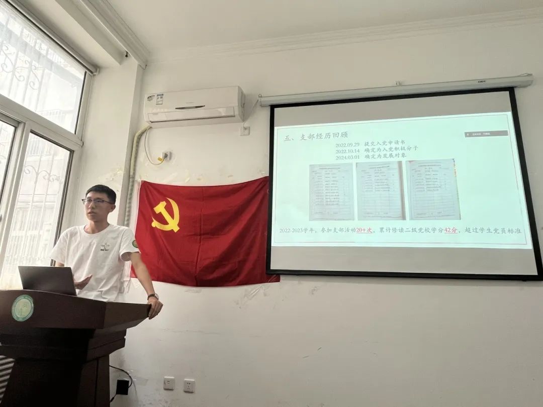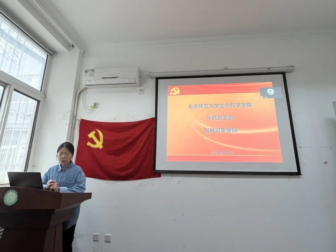 为深入学习贯彻习近平新时代中国特色社会主义思想和党的二十大精神,进一步考察入党积极分子的个人素质,保证发展党员质量,2024年5月19日中午,生命科学学院乐育党支部于生地楼129教室召开2024年春季学期发展对象答辩会,会议由支部组织委员苏慧岚同志主持,乐育党支部全体党员出席会议。