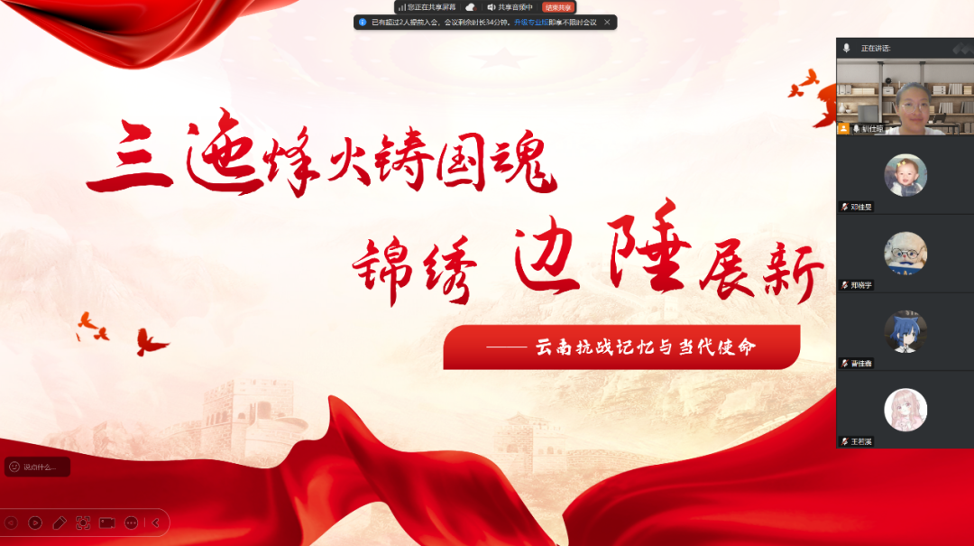 为纪念中国人民抗日战争暨世界反法西斯战争胜利80周年,传承红色基因,强化党员责任担当,8月31日21:00,励学党支部以腾讯会议线上形式开展主题党课活动。本次党课由党支部书记钏仕琼主讲,支部全体党员参与,围绕云南抗战历史、精神传承及当代青年使命展开深入交流。