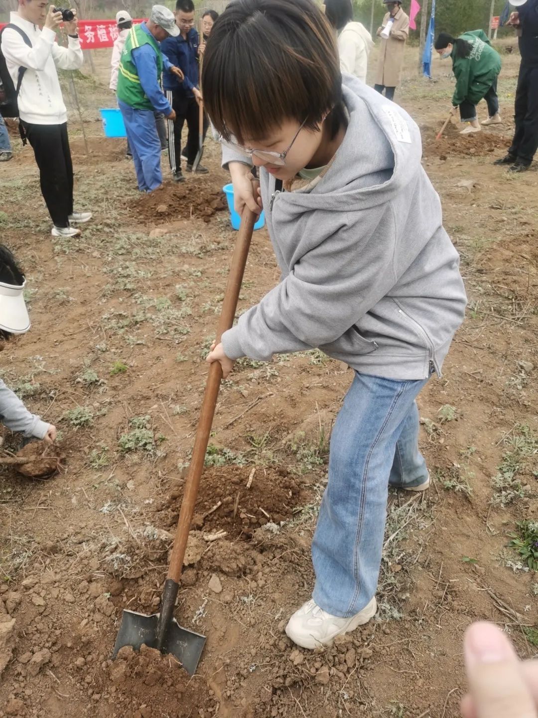 当地护林人员的指导和示范下,大家认真学习了挖坑、培土、浇水等每一个步骤,了解了其中的要点。在各种准备工作齐全之后,植树工作有条不紊地进行,大家分工合作,默契配合,全身心投入其中,用实际行动为首都的绿化事业贡献了自己的力量。