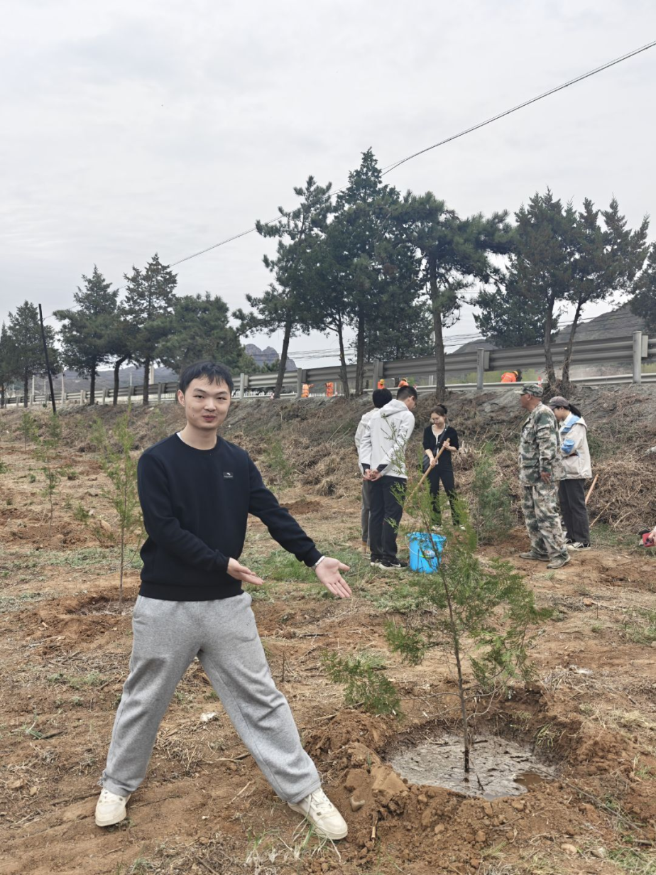 今天上午参加学校在密云组织的植树活动,让我深刻感受到春日劳动的充实与生态保护的意义。清晨的密云浸润在薄雾中,空气里弥漫着泥土的芬芳,当我们挥锹培土、扶苗浇水的瞬间,指尖触碰到的不仅是湿润的土壤,更是生命破土而出的蓬勃力量 。与同学们分工协作的过程中,我体会到团队默契的温暖——有人负责测量株距,有人小心固定树苗,还有人提着水桶往返奔波,大家额头沁出的汗珠在阳光下闪烁,却无人喊累。当亲手栽下的白杨树苗在春风中轻轻摇曳时,我仿佛看见它未来枝繁叶茂的模样,那将是我们留给这片土地的成长印记。这次活动不仅让我读懂了"绿水青山就是金山银山"的深意,更在心中种下了守护生态的责任感,期待未来能用更多行动为密云的山水画卷增添新绿 。