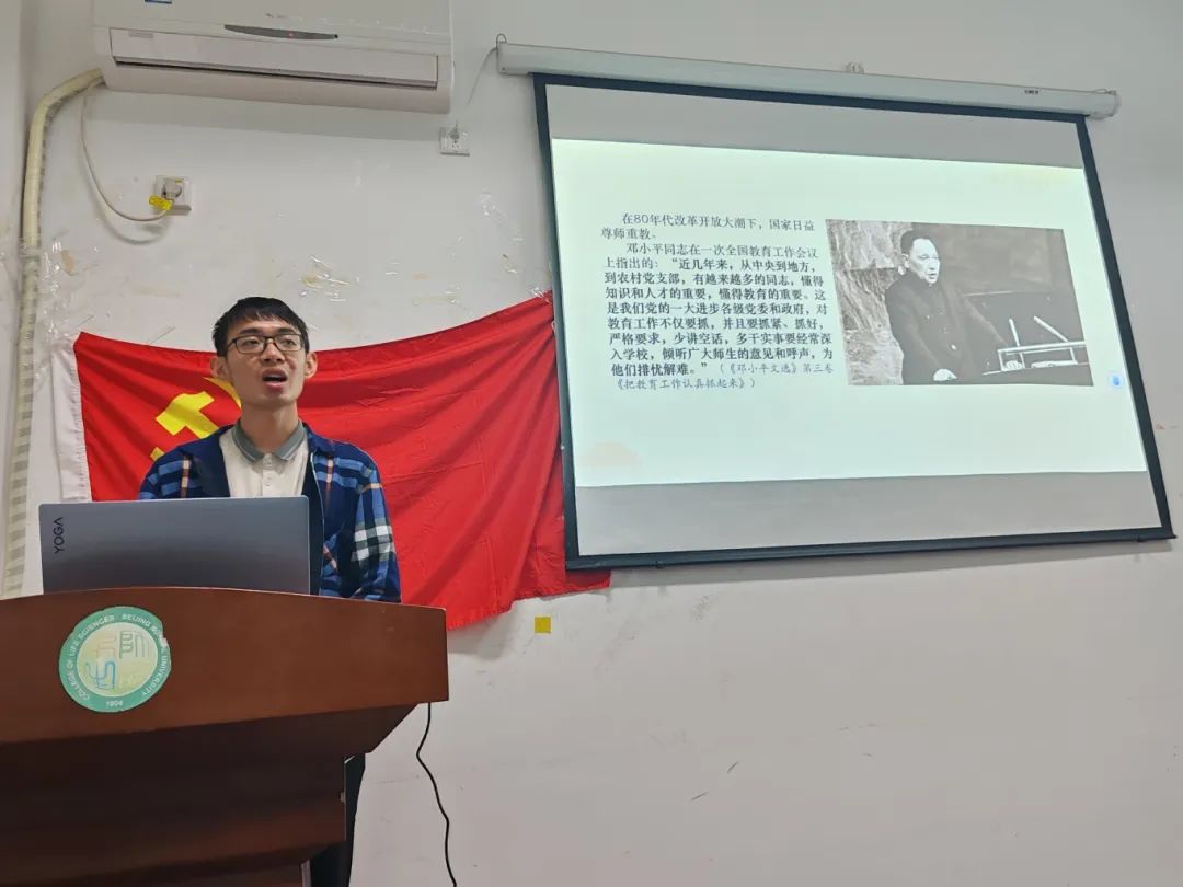 2024年9月10日是我国第40个教师节,为弘扬“大力弘扬教育家精神,加快建设教育强国”的主题精神,生命科学学院立身党支部于2024年9月27日晚20:00邀请励学理论宣讲团开展主题为《赓续师道传统,弘扬教育家精神》专题讲座。