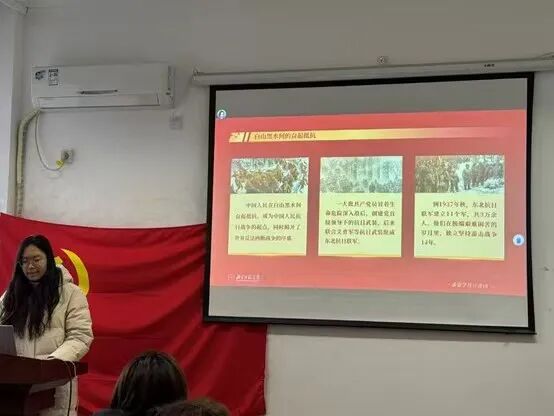 在此基础上,第二位宣讲员为同志们带来主题为“薪火相传:追寻习近平总书记讲述过的抗战英雄印记”的宣讲,从英雄事迹中感悟伟大抗战精神。