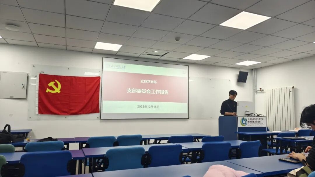 为进一步加强基层党组织建设,严格落实党组织按期换届选举制度,提升党组织建设规范化、制度化水平,按照《中国共产党章程》《中国共产党基层组织选举工作条例》等党内规定,经上级党组织批准,2025年12月15日,生命科学学院立身党支部在生态楼A105教室顺利召开2025年度换届大会,会议由支部书记苏元博同志主持。